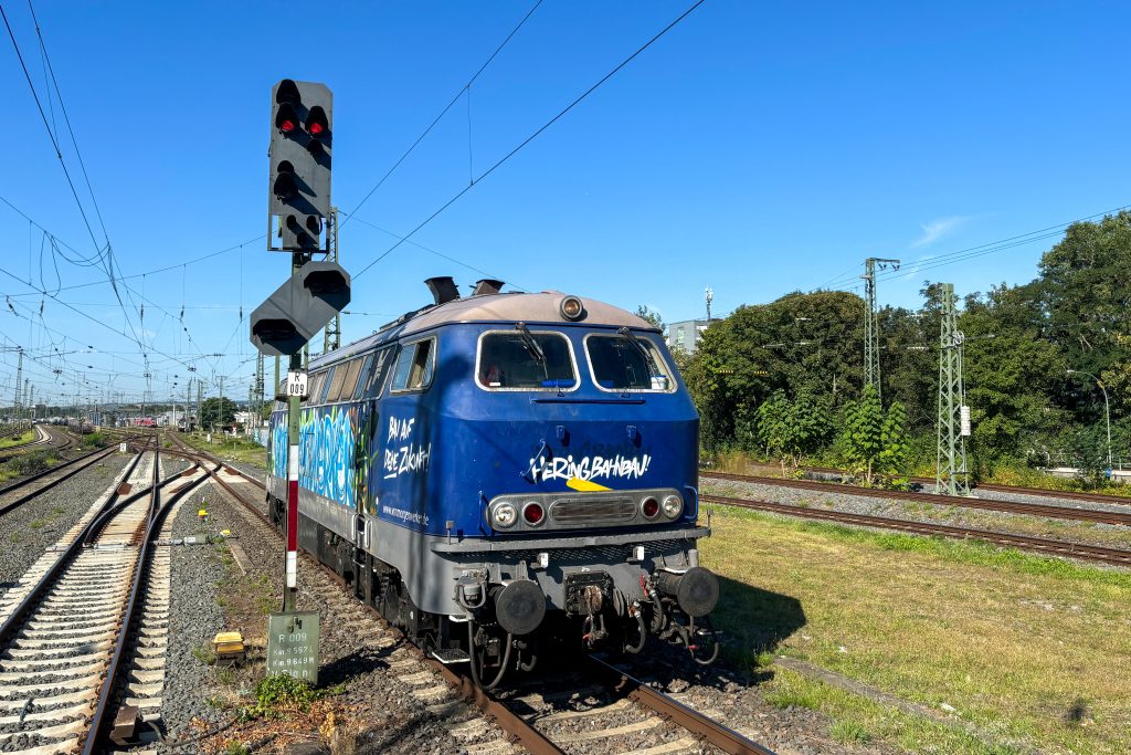 218 831 vor dem Bw Frankfurt-Griesheim, aufgenommen am 23.05.2024.